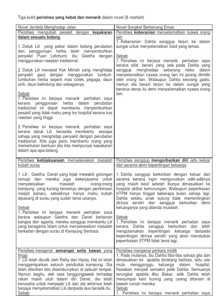 Nota Komsas Novel Songket Berbenang Emas Karangan Net
